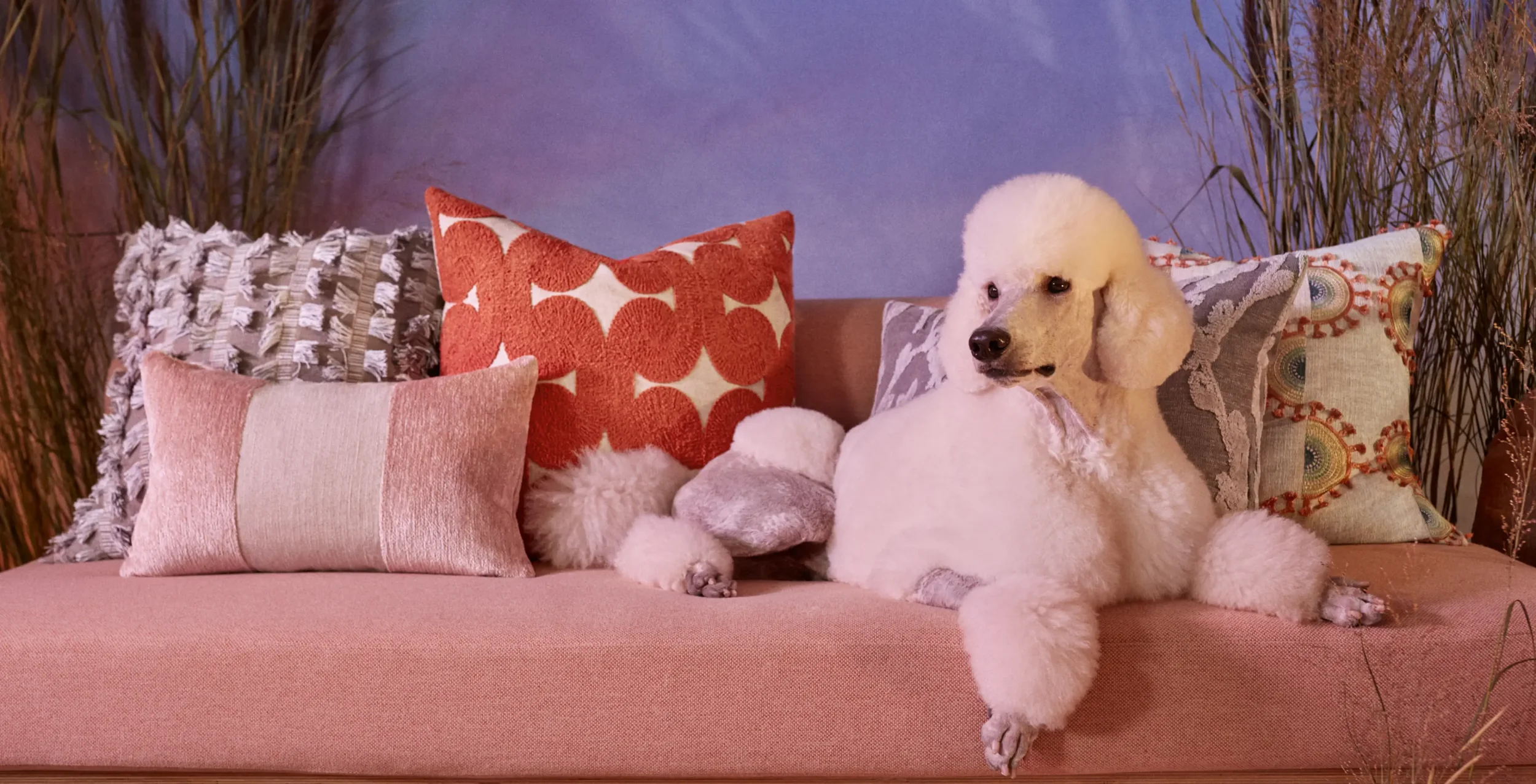We created a fantastical brand world celebrating the joy of and finding your style. Our goal was to set Floof apart by underscoring the craftsmanship and expertise behind each pillow, zipper, and fabric choice—all with a touch of whimsy. We designed a tactile digital experience showcasing Floof’s quality at every click. The brand comes to life through magical, immersive art direction that’s so splendid you’d never guess it was shot in the Red Antler office. The name Floof is a playful homage to comfort, softness, and finishing touches. For the brand’s symbol, we created a poodle icon as chic, huggable, and sculptural as the pillows themselves.